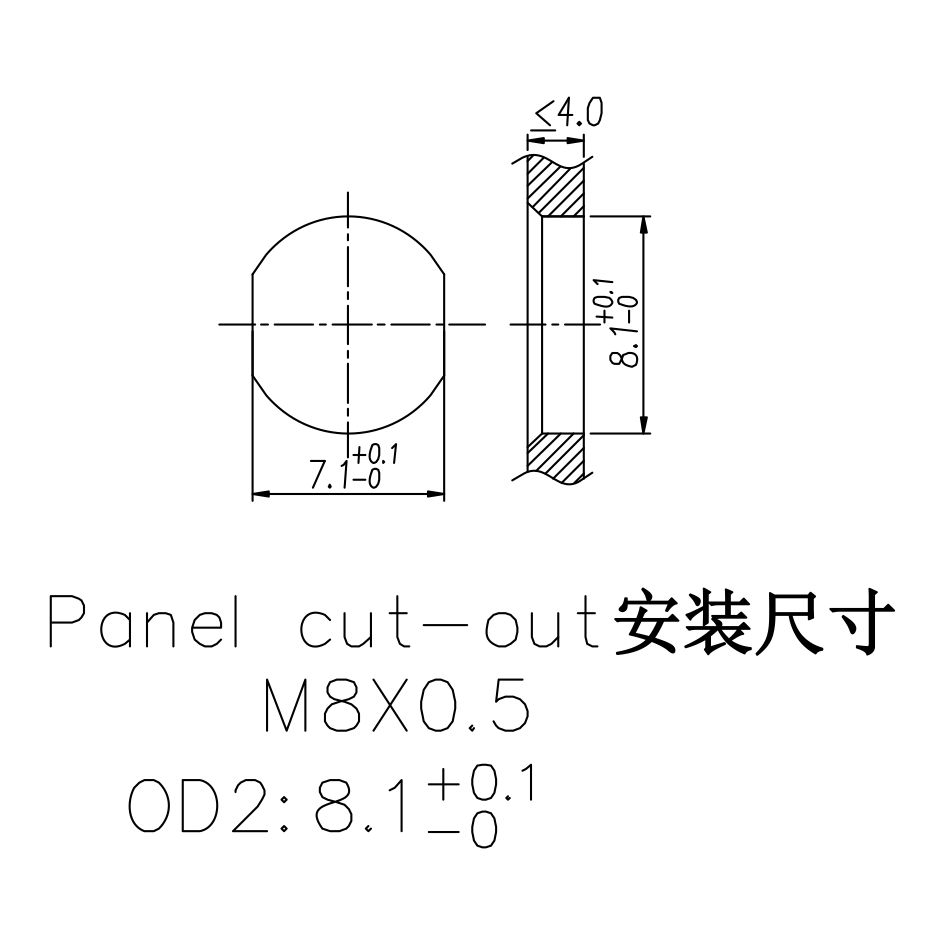 M8 Female Panel Mount, PCB Type, Rear Fastened