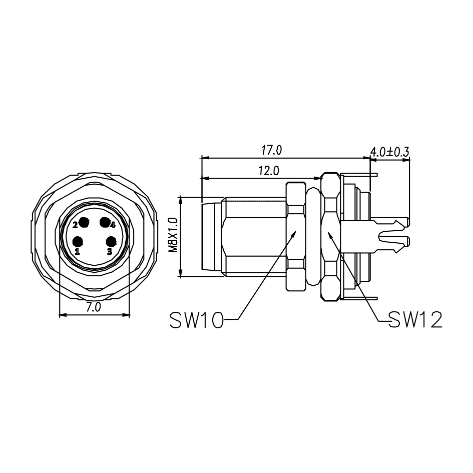 M8 Male Panel Mount, PCB Type, Front Fastened