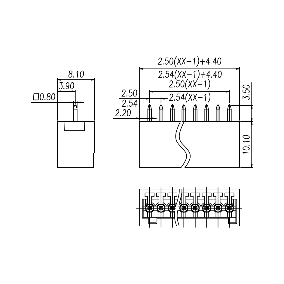 Pitch: 2.5 mm/2.54mm