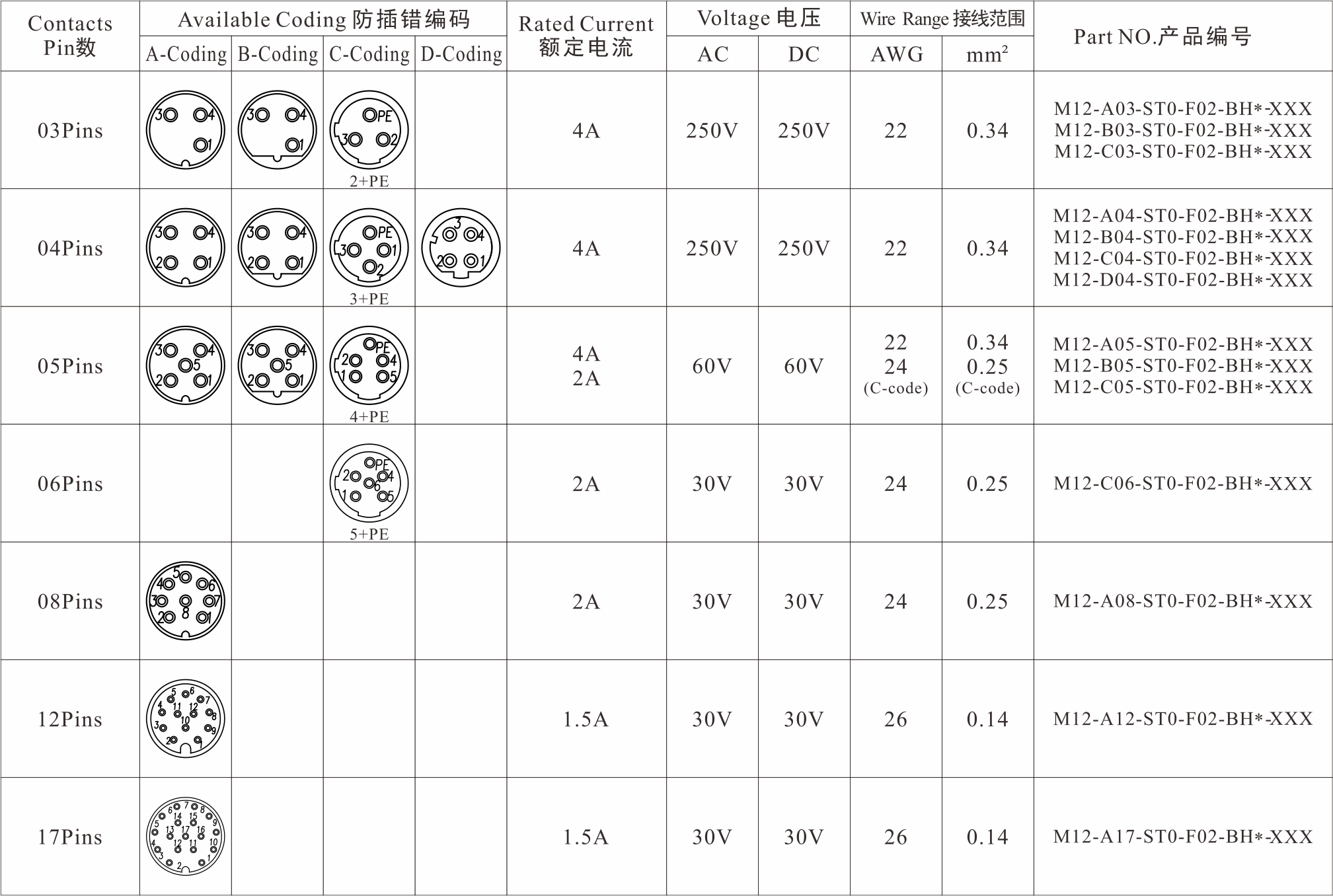 3/4Pins5Pins6/8Pins12/17Pins