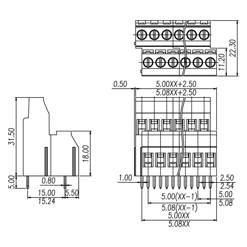 间距: 5.0 mm/5.08 mm