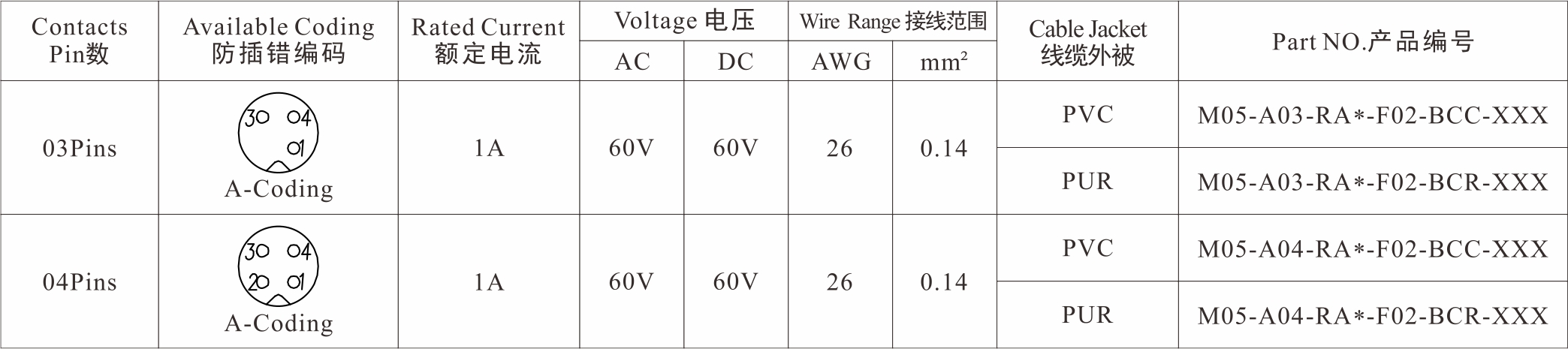 Part No 产品编码:M05-A**-RA0-F02-BC*-XXX