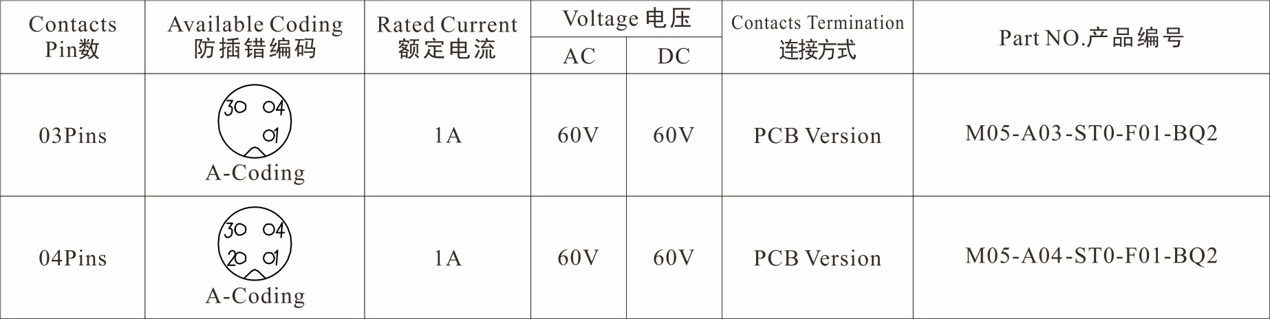 Part No 产品编码:M05-A**-ST0-F01-BQ2