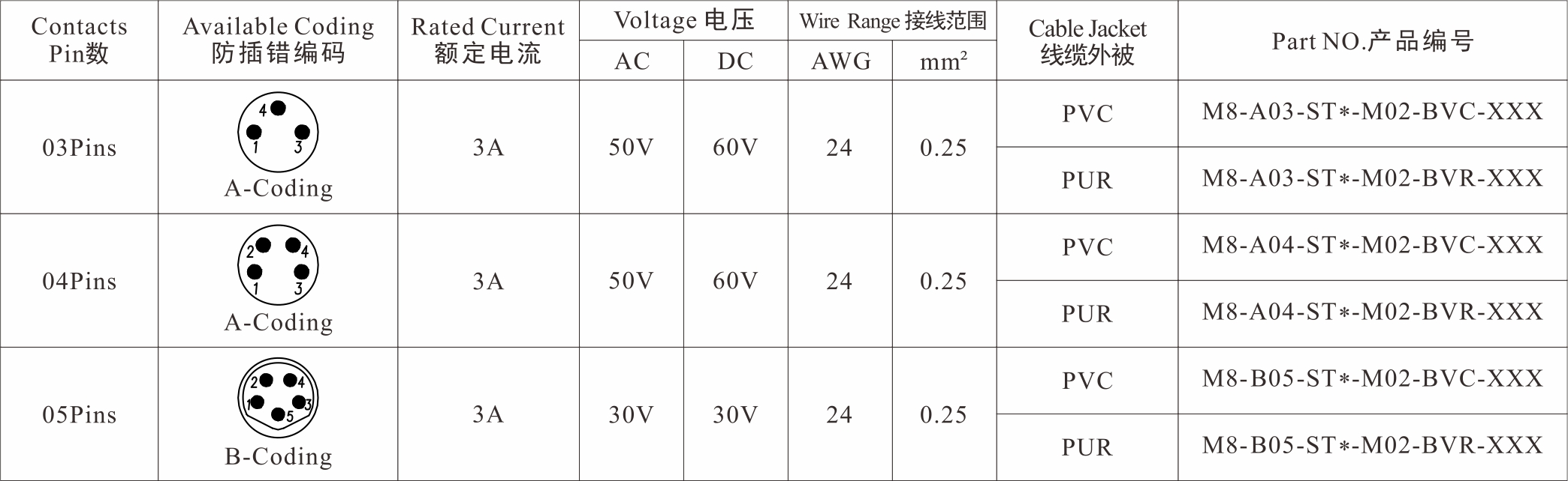 Part No 产品编码:M08-X**-ST0-M02-BV*-XXX