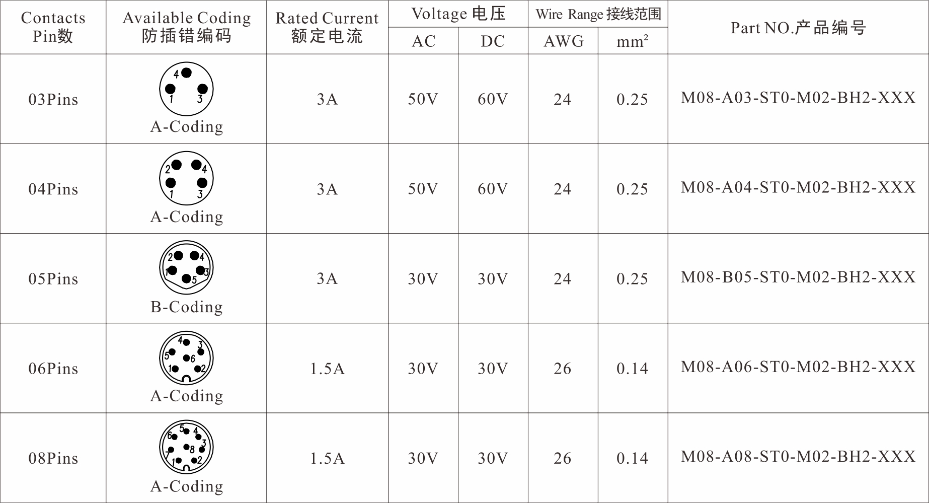 Part No 产品编码:M08-X**-ST0-M02-BH2-XXX