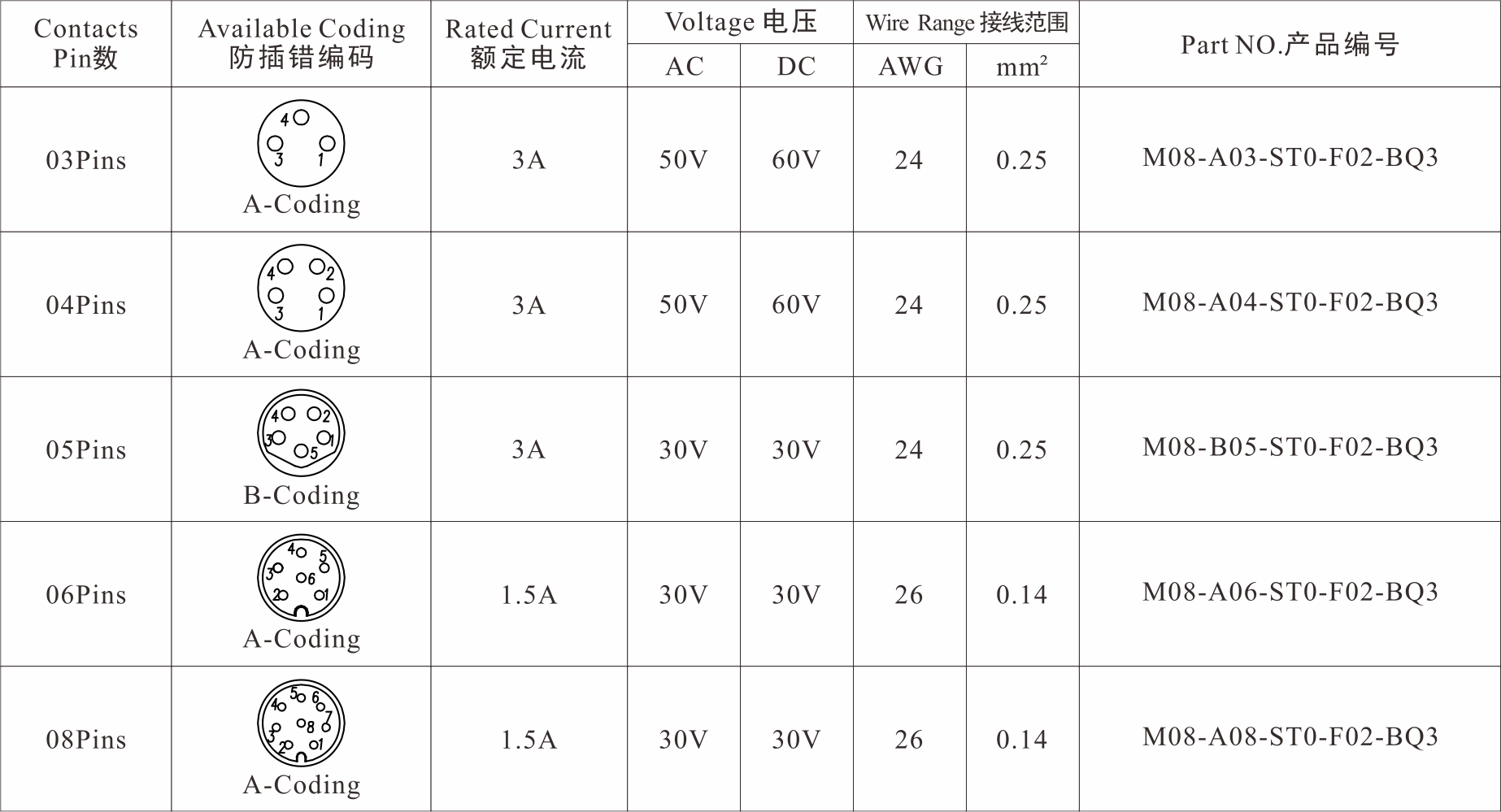 Part No 产品编码:M08-X**-ST0-F02-BQ3