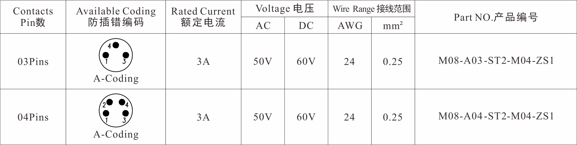 Part No 产品编码:M08-X**-ST2-M04-ZS1