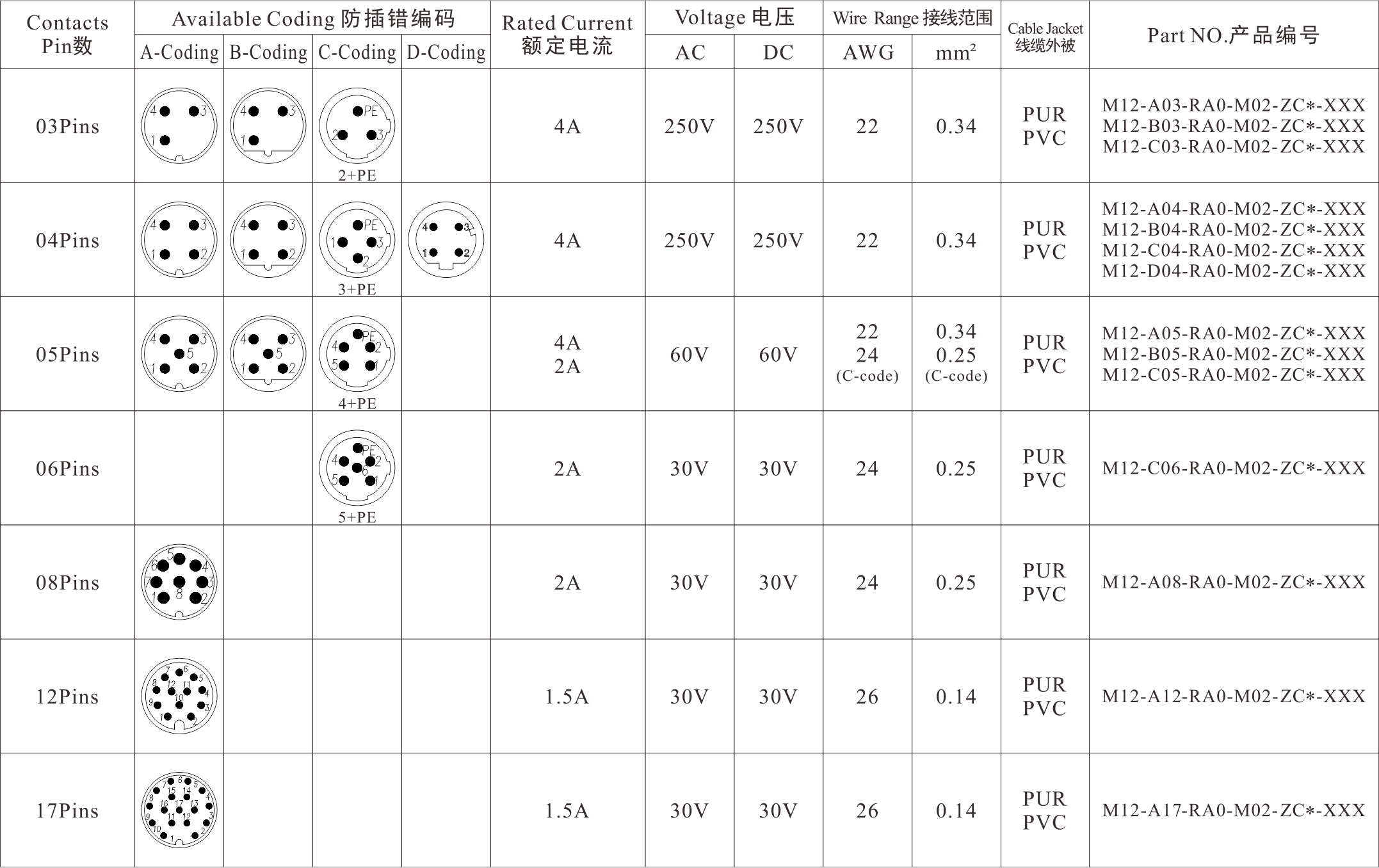 产品编号:M12-X**-RA0-M02-ZC*-XXX