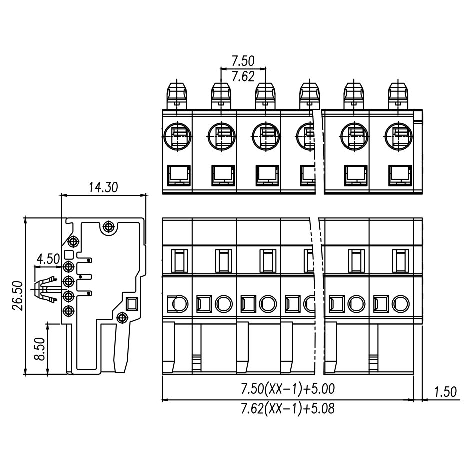 间距: 7.5 mm/7.62 mm