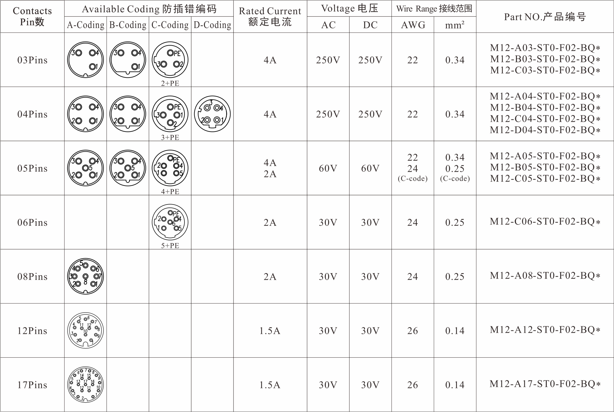 3/4Pins5Pins6/8Pins12/17Pins