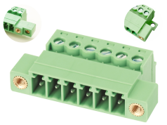 插拔式接线端子,设计上结合了现场维护便捷插拔和连接可靠两大优点 , 提供插头直锁式及免锁式多种接线方式 , 可以连接截面为 0.08mm²至16mm² 的所有类型导线,间距2.5mm至10.16mm可供选择,根据需要选择进线方向,连接方向,插拔方向。产品设计符合IEC60998、IEC61984、UL1059、UL486E、CSA C22.2 No.158等国际标准。