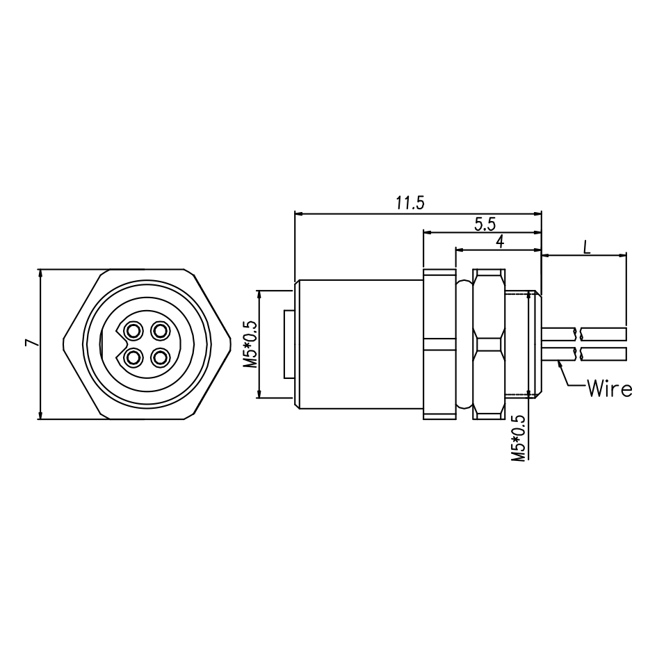 M5 母头面板式,焊接型,后锁安装,焊电子线