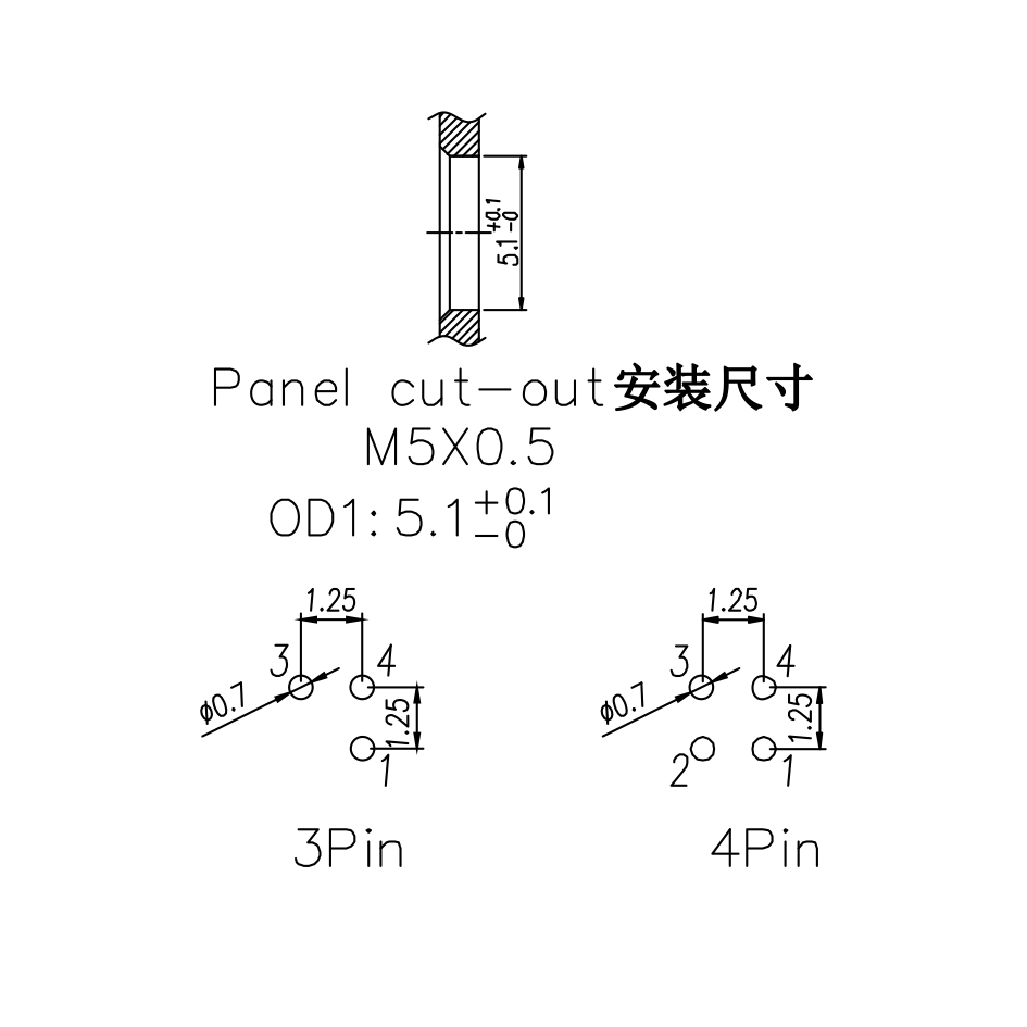 M5 母头面板式,PCB型,后锁安装