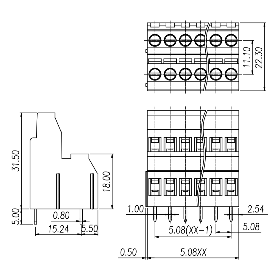 间距/极数 Pitch/Poles [mm]/[P]5.08/2*2-2*24