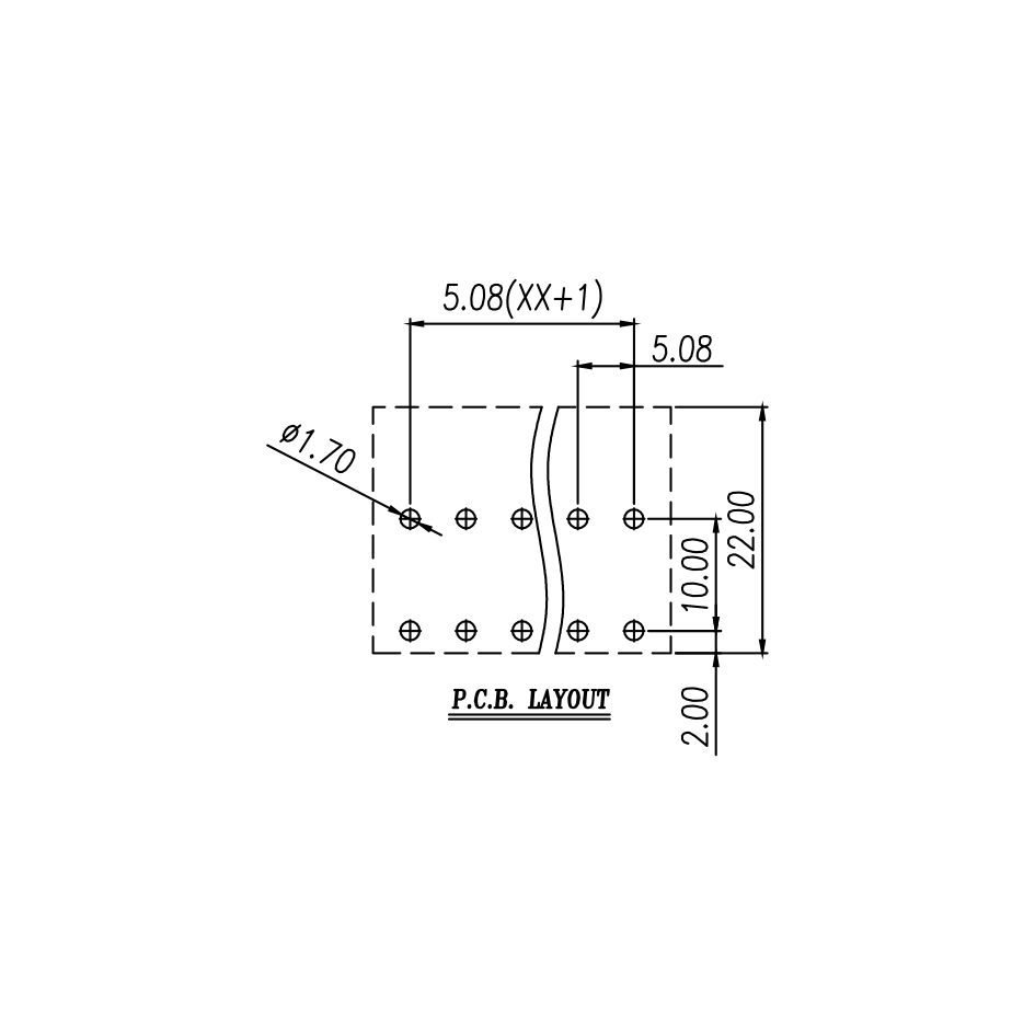 PCB板孔径 PCB Hole Diameter [mm]∅1.7