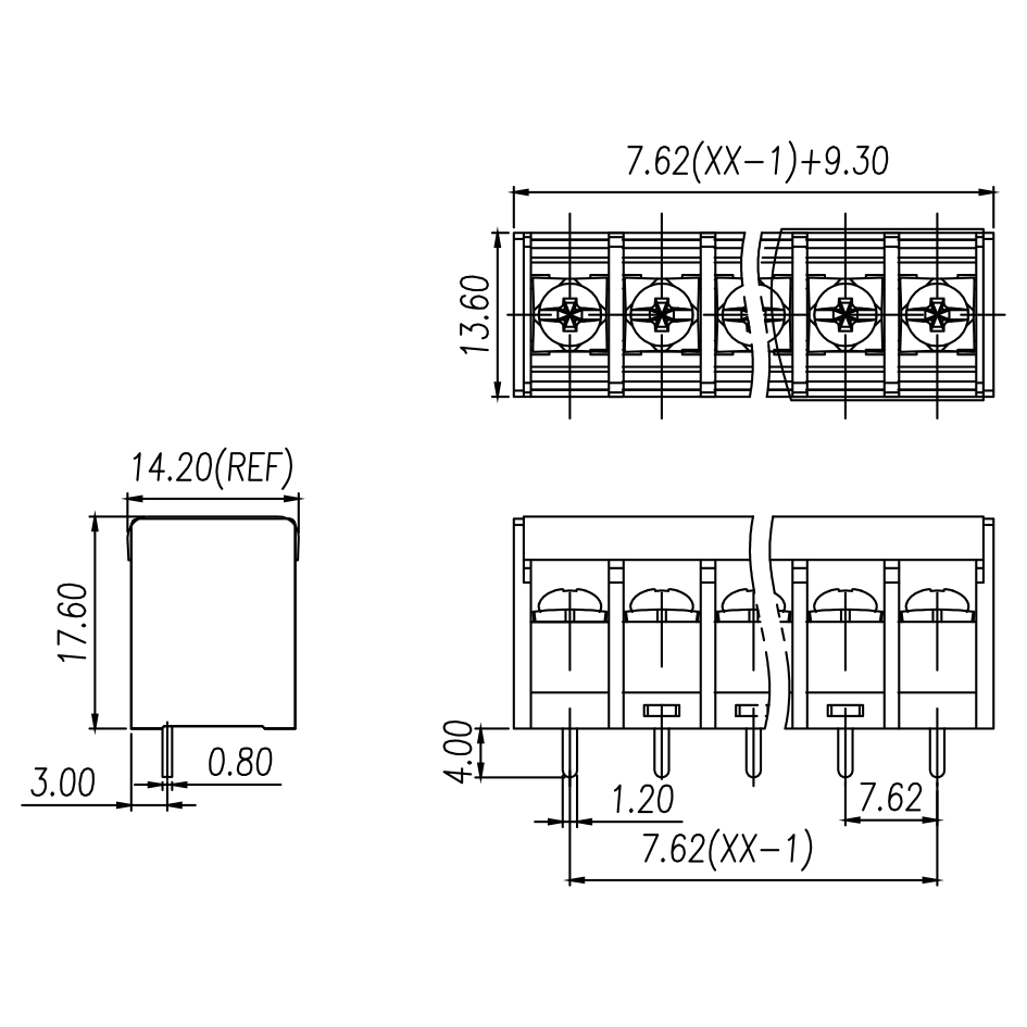 间距/极数 Pitch/Poles [mm]/[P]7.62/2-22